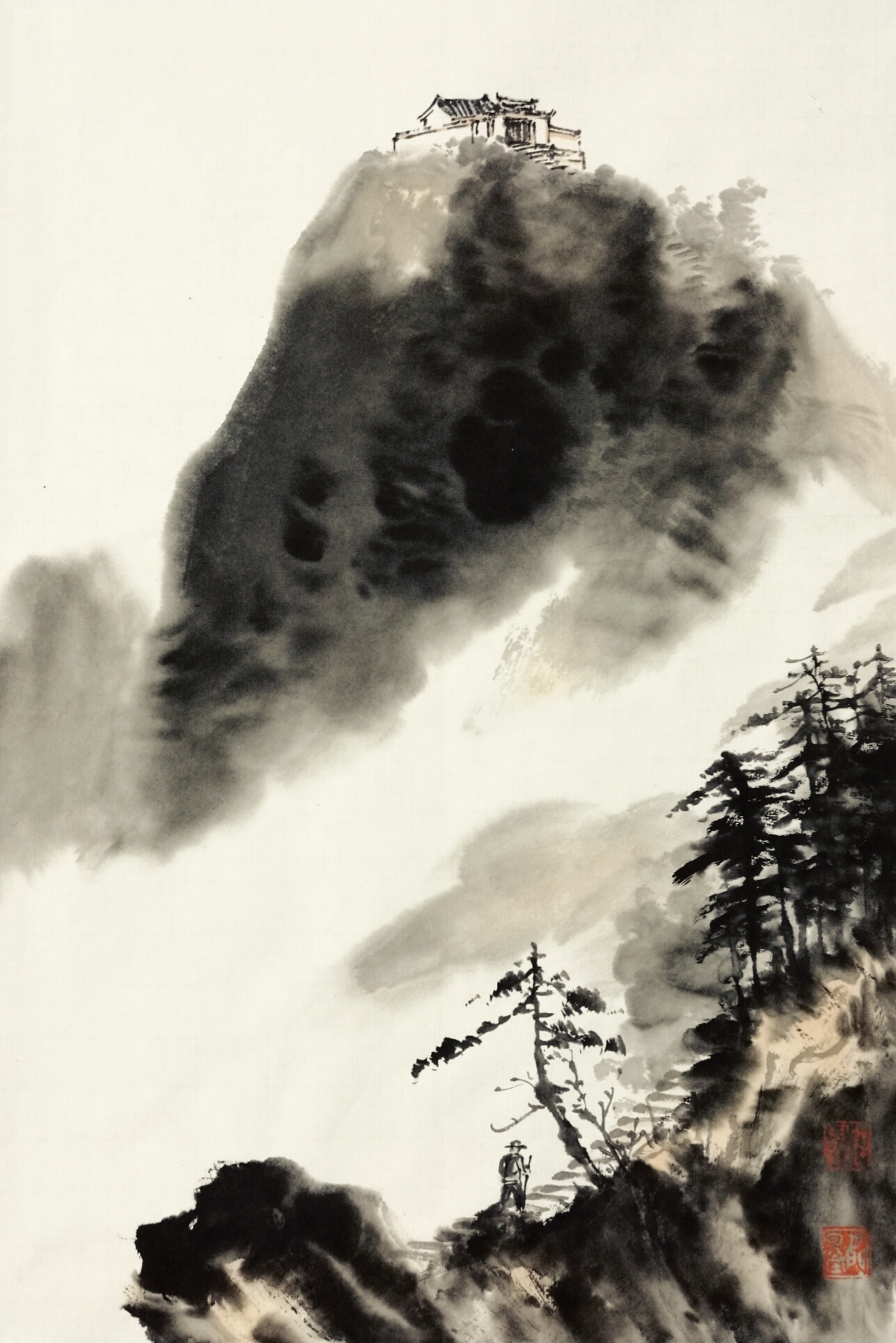 巨幅山水《武當(dāng)山煙雨》140*47cm
