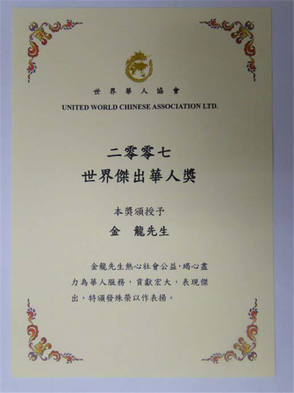 21)2007年,深圳首位書法家獲“世界杰出華人獎”