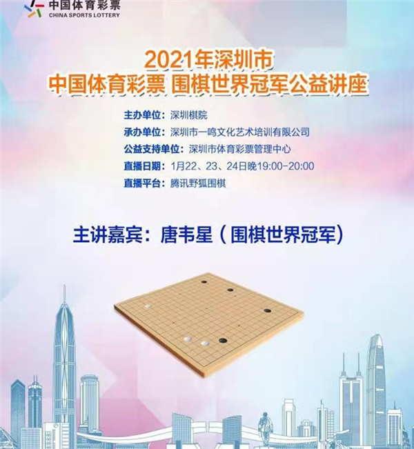 見圳客戶端?深圳新聞網(wǎng)訊(記者周錦春)2021年1月22、23、24日連續(xù)三天晚上,由深圳棋院主辦,深圳市一鳴文化藝術培訓有限公司承辦,深圳市體育彩票管理中心支持的“2021年深圳市中國體育彩票圍棋世界冠軍公益講座”在騰訊野狐圍棋平臺線上舉行。