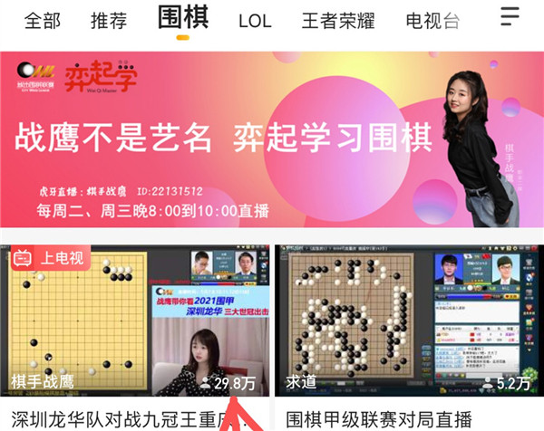 今日虎牙直播,職業(yè)女棋手戰(zhàn)鷹繼續(xù)現(xiàn)場講解點評深圳龍華隊對局情況,觀看人數(shù)又創(chuàng)新高,直沖30萬大關(guān)。賽后,“龍哥”時越來到直播室,與迷們一起分享了對局過程中的心路歷程。戰(zhàn)鷹作為圍棋知名主播,是深圳龍華隊網(wǎng)上直播合作人,為龍華隊帶來了一波接一波的人氣,直播室十分熱鬧!喜歡的朋友接著看吧!不過,大家要記得:明天圍甲休息一天,接著三天會連播。