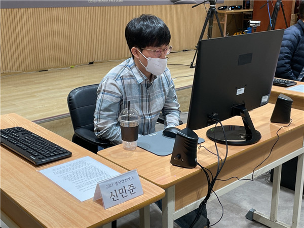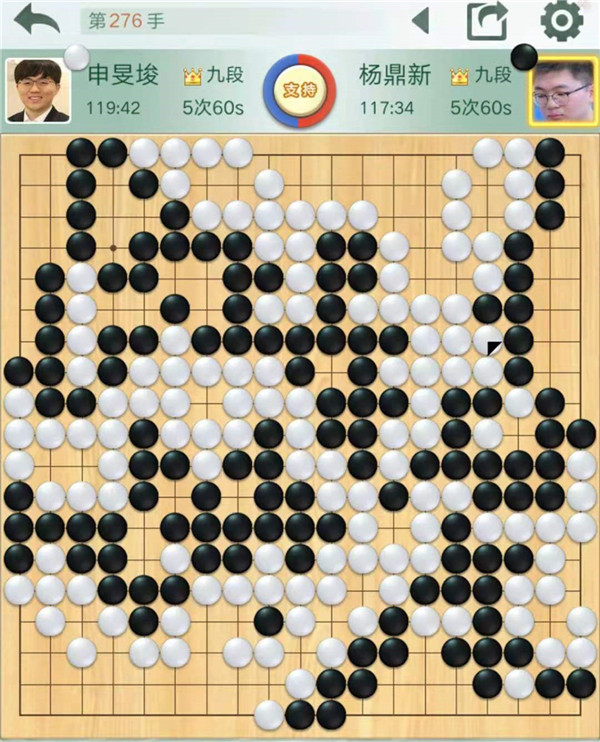 二臺主將申旻俊執(zhí)白對陣楊鼎新。右邊戰(zhàn)斗黑棋有所失誤,白棋局面大好。后來黑棋頑強追趕,最終還是白棋以最小優(yōu)勢1/4子獲勝。