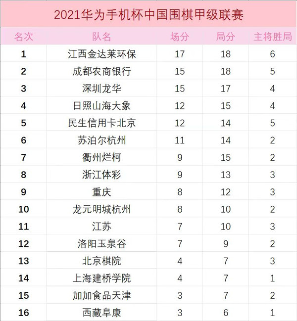 見(jiàn)圳客戶(hù)端?深圳新聞網(wǎng)2021年6月7日訊(記者周錦春)華為手機(jī)杯男子圍甲聯(lián)賽在浙江長(zhǎng)興重燃戰(zhàn)火, 深圳龍華隊(duì)1:3不敵日照山海大象隊(duì)跌落榜首,排名被江西和成都超越降至第三位。上屆冠軍江西金達(dá)萊環(huán)保隊(duì)本階段首輪繼續(xù)保持勝勢(shì),3比1擊敗北京棋院隊(duì),金身不敗豪取6連勝,并登上積分榜首位。