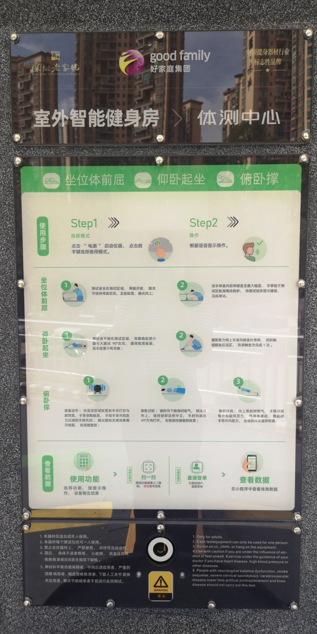 從寶安大道走進(jìn)寶安體育館,沿著裕安一路,在碩大的“室外智能健身設(shè)施”的指引牌下,我們看到了一線(xiàn)極具科技感的健身設(shè)施。這些設(shè)施采用不測(cè)試不訓(xùn)練的理念,通過(guò)科學(xué)健身運(yùn)動(dòng)方式,涵蓋從體質(zhì)測(cè)定到有氧訓(xùn)練、力量訓(xùn)練等訓(xùn)練內(nèi)容,利用智能化系統(tǒng)形成評(píng)估報(bào)告,出具運(yùn)動(dòng)報(bào)告。通過(guò)這套設(shè)備,市民不但可測(cè)試訓(xùn)練,遠(yuǎn)程進(jìn)行線(xiàn)上比賽。同時(shí),配套的系列服務(wù),還可提升市民對(duì)身體、健康運(yùn)動(dòng)、健康飲食的認(rèn)識(shí)。