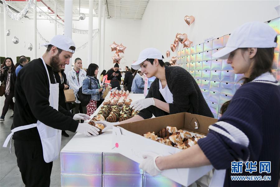 3月18日,在美國紐約,工作人員在甜品節(jié)上準(zhǔn)備出售熱門甜品。一年一度的紐約“甜品目標(biāo)”甜品節(jié)于17日開幕,20多家甜品展商在現(xiàn)場展示造型精美、創(chuàng)意十足的美味甜品,吸引超過5000名甜品愛好者報名參加。甜品節(jié)還精心設(shè)置了美拍專區(qū),方便人們在享用甜品的同時在社交平臺上分享甜蜜時刻。新華社記者王迎攝