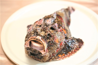 番禺九號(hào)私廚有一種奇丑無比的魚,它生活在海底60米之下,興起之時(shí)游走于珊瑚之間,懶起來一動(dòng)不動(dòng),潛水之人常常將其誤認(rèn)為是石頭,所以稱它為石頭魚。石頭魚渾身長刺且有毒,廚師只取其肉,棄用魚皮。它自古被視為魚中珍品,因魚肉鮮嫩,據(jù)《本草綱目》記載石頭魚能夠治療筋骨痛,有溫中補(bǔ)虛功效。