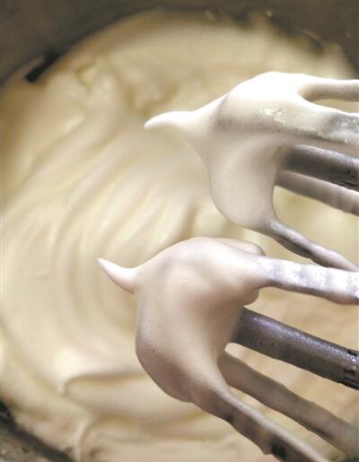 蛋白打好時(shí)會(huì)出現(xiàn)小小的彎勾。