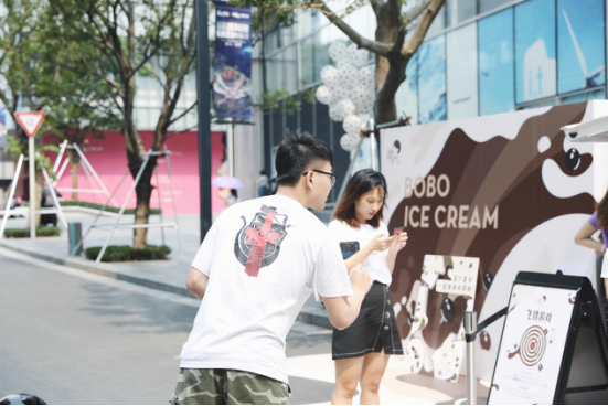 活動當(dāng)天,只要身穿波點元素衣服,就可在波波巴士站領(lǐng)取一杯喜茶派送的新鮮現(xiàn)做的“波波冰淇淋”?;油娣ㄒ哺迂S富,除了現(xiàn)場設(shè)置了很多互動拍照的小道具和背景之外,還新添加了抽獎、飛鏢游戲環(huán)節(jié),并為消費者準(zhǔn)備了多樣波波冰淇淋周邊,如喜茶定制波波手機(jī)殼、波波冰淇淋扇子、波波冰淇淋貼紙等等。