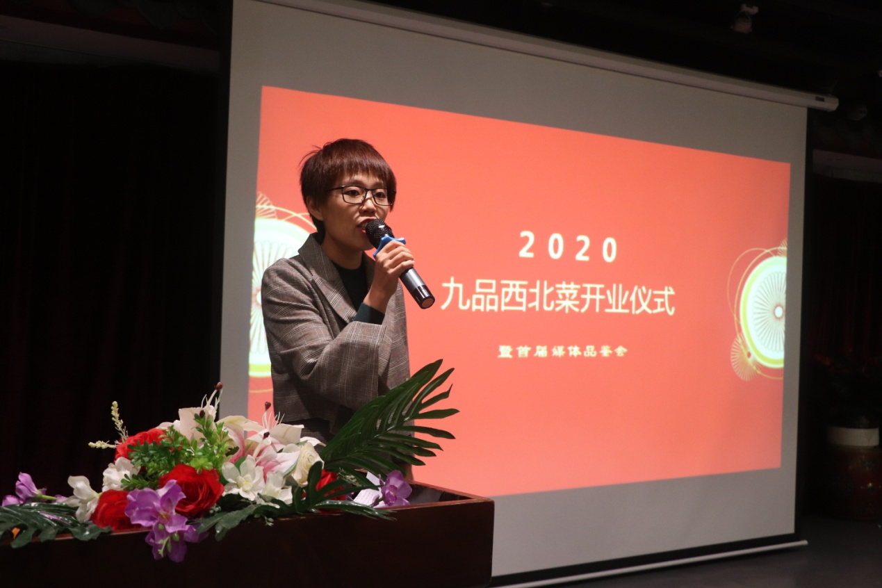 本屆媒體品鑒會(huì)由“九品西北菜”創(chuàng)始人兼出品總監(jiān)賈淑萍女士歡迎致辭,并且分享了關(guān)于品牌創(chuàng)始背后的故事。“九品西北菜”是傾金河建材集團(tuán)之力,萃取20多年用心精華,嚴(yán)格把控菜品供應(yīng)鏈,歷史20年,打造出來的新品牌。