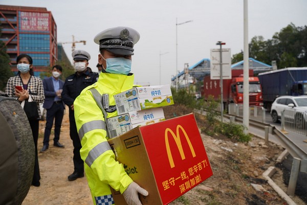 你們?cè)谝痪€戰(zhàn)疫,我們來(lái)為你補(bǔ)給!隨后,市關(guān)愛(ài)辦攜手伊利集團(tuán)、麥當(dāng)勞先后前往光明羌下公安檢查站、寶安區(qū)松安防疫檢查點(diǎn),為正在一線忙碌的工作人員,送上愛(ài)心牛奶與熱乎乎的愛(ài)心午餐。“你們辛苦了”、“繼續(xù)加油”……每發(fā)放一次牛奶與午餐,工作人員都不忘了戰(zhàn)疫者們致敬致謝。