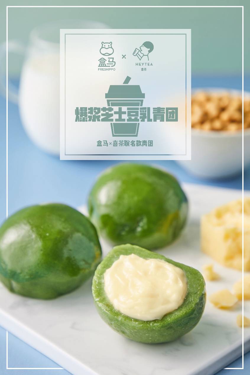 此次推出的青團共有兩款:爆漿芝士豆乳青團、阿華田波波青團?!鞍涯滩栾L味做到青團里,確實是頭一次?!焙旭R負責人茜倩表示,這次的合作雙方一拍即合;將盒馬青團與喜茶最熱門的豆乳口味、最受歡迎的波波相結(jié)合,也是希望能在傳統(tǒng)美食中增添新意,帶給消費者不同的味覺體驗。