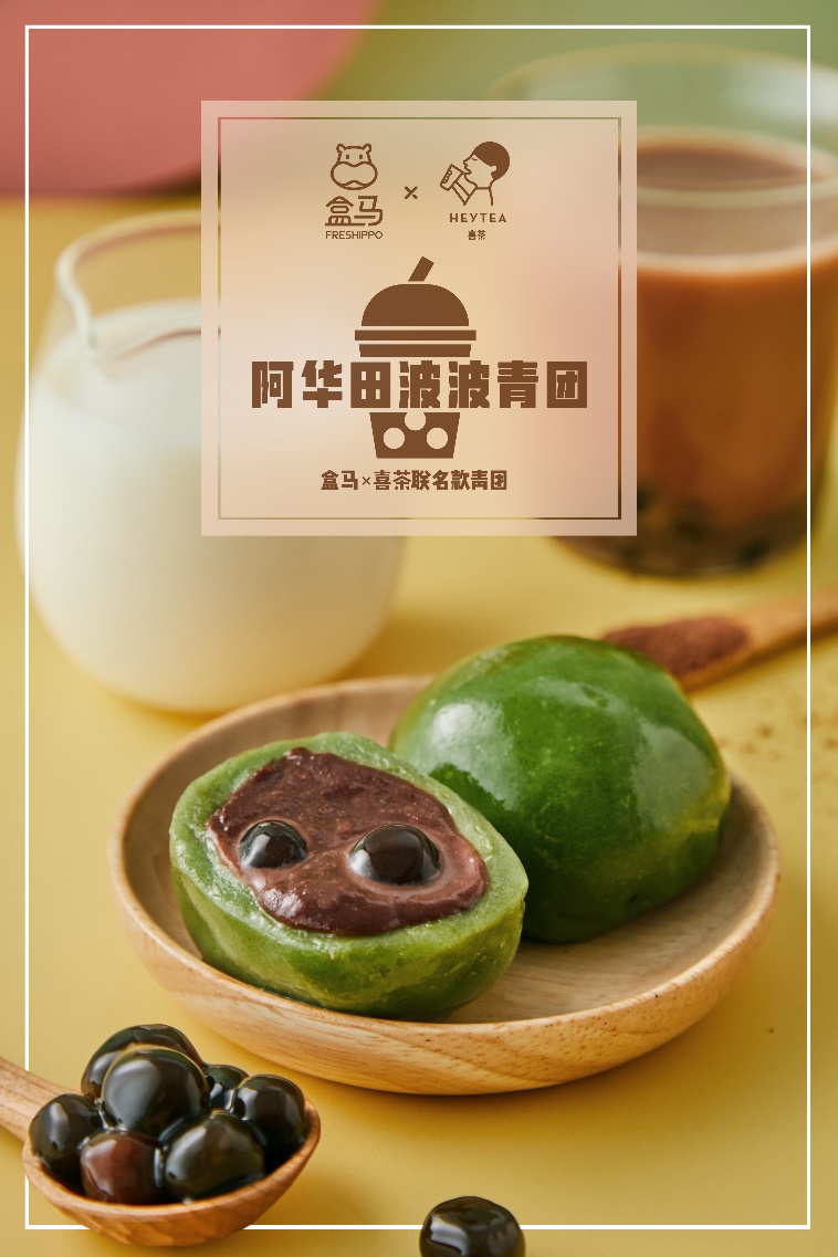 今天,謎底終于揭曉——喜茶手里的是奶茶,而盒馬手中捧著的,是青團。