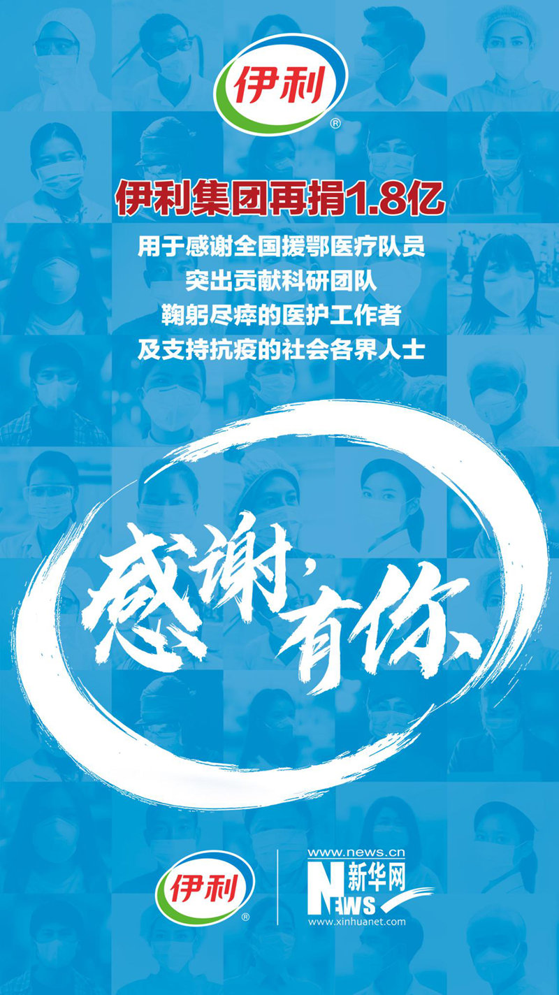 新華網(wǎng)北京3月26日電(胡可璐) 在這場戰(zhàn)“疫”中,無數(shù)平凡英雄帶給我們最多感動,他們以“逆行者”的無畏和擔(dān)當(dāng)筑起疫情防控生命線,守護著人民,守護著國家。3月26日,伊利集團再捐1.8億,第一時間購買京東購物卡,贈送給全國所有援鄂醫(yī)療隊員,向他們提供全年營養(yǎng)支持;向鐘南山院士、李蘭娟院士、程京院士團隊捐贈1500萬元,感謝科研工作者做出的突出貢獻(xiàn),共同推動健康領(lǐng)域的科研攻關(guān);第一時間購買京東購物卡,贈送給這次抗擊疫情中因公殉職醫(yī)護工作者的家屬,為他們提供連續(xù)十年的營養(yǎng)支持;同時也向奮戰(zhàn)在抗疫一線的社會各界人士提供營養(yǎng)保障。責(zé)任無界,大愛無疆,伊利累計捐贈額度將達(dá)2.8億,共迎抗疫勝利。