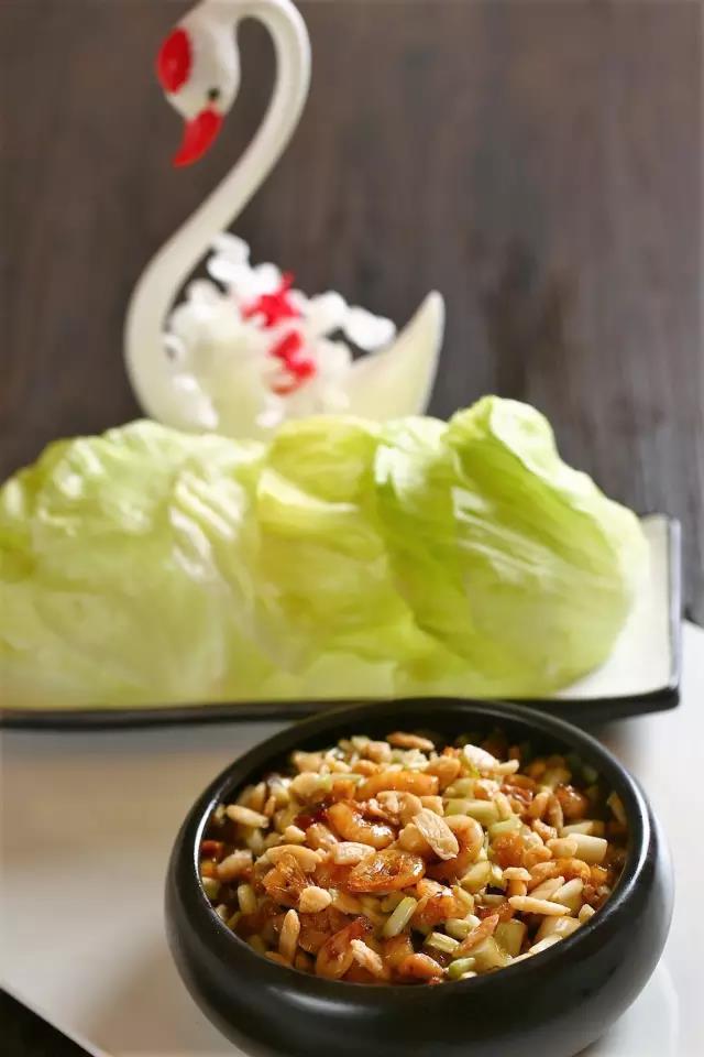 皮皮蝦焯熟以后過冰,剪去邊緣的刺,再完整拆出肉來,拍上少許味料與生粉,煎到兩面呈金黃色。然后加入蕎菜翻炒片刻即可。除了這二者之外,還會配爽口的黑雞樅。