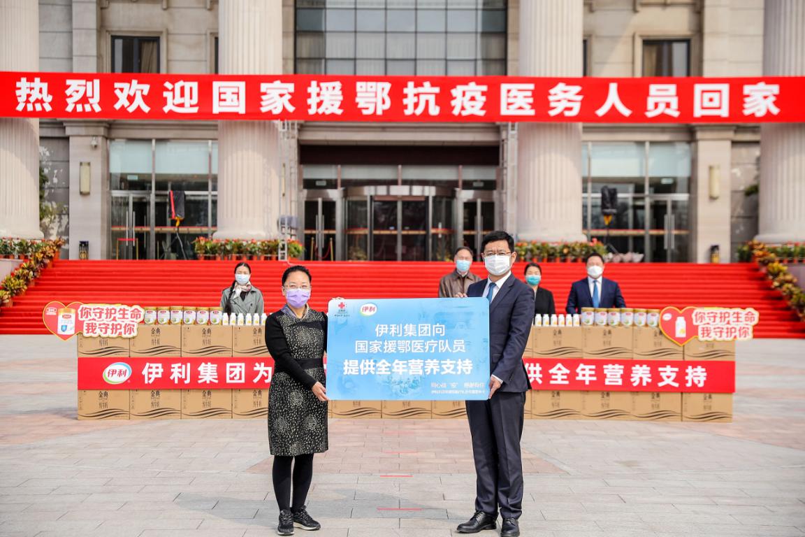 作為健康領(lǐng)域的龍頭企業(yè),伊利一直為抗疫提供支持。3月31日,伊利聯(lián)合國(guó)家衛(wèi)健委第一時(shí)間向全國(guó)所有援鄂醫(yī)療隊(duì)員提供全年?duì)I養(yǎng)支持,用愛(ài)心和營(yíng)養(yǎng)持續(xù)守護(hù)一線抗疫醫(yī)療隊(duì)員的健康。這既是疫情爆發(fā)后,伊利為一線抗疫群體送去營(yíng)養(yǎng)關(guān)愛(ài)的延伸,也將是隊(duì)員們回到工作崗位后,伊利迎接他們的一聲聲暖心問(wèn)候。國(guó)家衛(wèi)生健康委食品安全標(biāo)準(zhǔn)與監(jiān)測(cè)評(píng)估司一級(jí)巡視員張磊時(shí)表示肯定和贊賞:“伊利為疫情防控工作做出了重要貢獻(xiàn),此次伊利第一時(shí)間為凱旋歸來(lái)的國(guó)家援鄂醫(yī)療隊(duì)提供全年?duì)I養(yǎng)支持,用愛(ài)心和營(yíng)養(yǎng)持續(xù)守護(hù)隊(duì)員們的健康,這一切都讓我們看到了龍頭企業(yè)的社會(huì)責(zé)任與擔(dān)當(dāng)。”