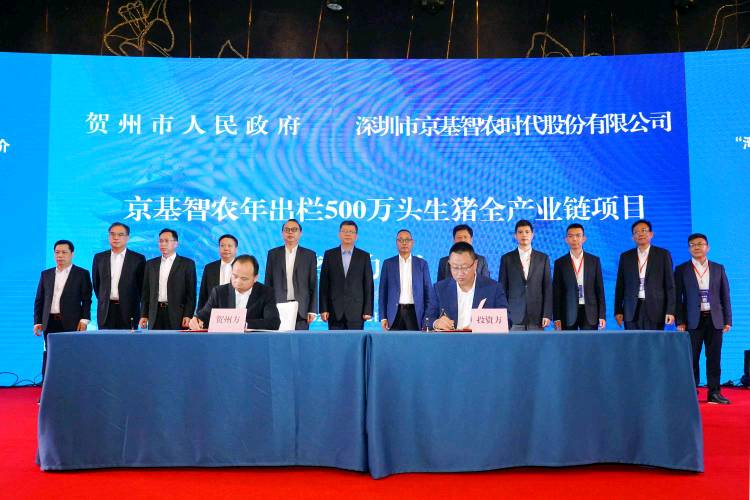 見圳客戶端·深圳新聞網(wǎng)2020年5月25日訊 2020年5月22日,廣西東融先行示范區(qū)(賀州)建設發(fā)展若干政策新聞發(fā)布會暨“灣企入桂”賀州項目推介會在深圳舉行。推介會上,深圳市京基智農(nóng)時代股份有限公司 (以下簡稱“京基智農(nóng)”)與廣西賀州市人民政府簽署《京基智農(nóng)賀州市年出欄500萬頭生豬全產(chǎn)業(yè)鏈項目合作框架協(xié)議》,這意味著京基智農(nóng)生豬產(chǎn)業(yè)布局劍指千萬頭規(guī)模,現(xiàn)代農(nóng)業(yè)板塊駛?cè)氚l(fā)展的快車道。