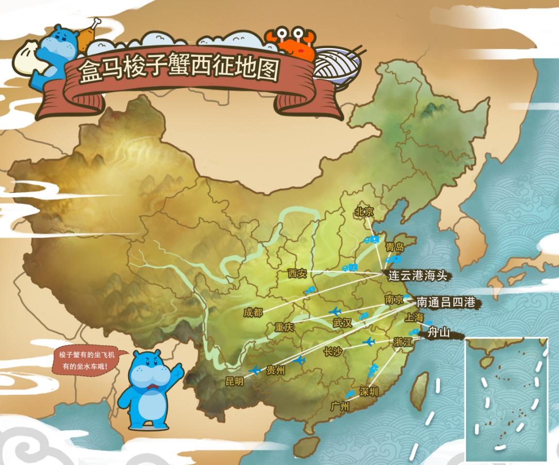 除了浙江舟山,盒馬還在在江蘇呂四、連云港分別設(shè)立了直采基地和純海水恒溫暫養(yǎng)倉,每個暫養(yǎng)倉可以容納5萬斤的梭子蟹和皮皮蝦,可以滿足2 -3天的海鮮供應(yīng)量,并根據(jù)空間距離、物流干線等因素,來調(diào)撥供應(yīng)近20個城市的門店,提升海鮮的鮮活度。