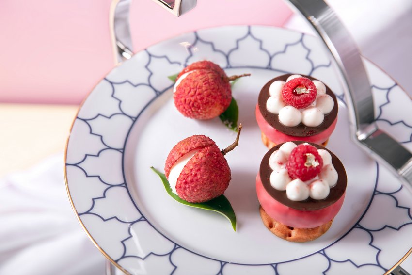 酒店餅房廚師長趙偉匠心獨(dú)運(yùn),使的荔枝和樹莓在傳統(tǒng)下午茶中呈獻(xiàn)別樣風(fēng)情:法式焦糖燉蛋和荔枝的融合,恍若天成,是中西合璧的典范;茶香馥郁,入口冰爽的荔枝茶醬果凍在樹莓的烘托下,順滑似潺潺清露,甘美宜人;當(dāng)樹莓的巧妙微酸邂逅荔枝的清新甜美,一口蛋糕就能捕獲這個(gè)夏天最令人心動(dòng)的瞬間;樹莓和酸奶的邂逅是那么猝不及防,輕咬一口,流心滿溢,香醇和清潤的多層次的口感交疊纏綿,讓人無限回味;那一樹生機(jī)盎然讓人不禁好奇,原來枝頭碩果是妙趣的荔枝蝦球,外脆有聲,內(nèi)里鮮香Q彈,這樣的組合聽來不可思議,只有親試方能體會(huì)海陸鮮甜交匯的真意。