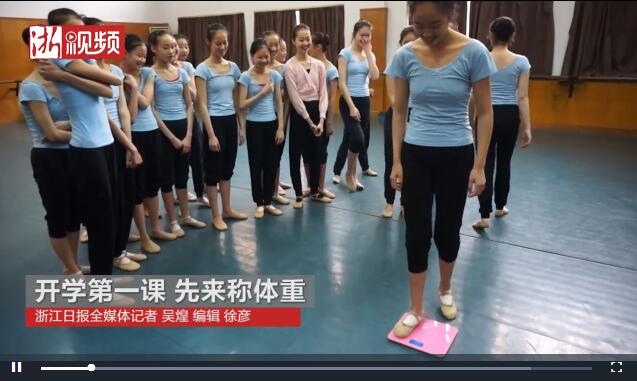 2月21日,記者來到浙江藝術(shù)職業(yè)學(xué)院舞蹈系,看著那個骨瘦如柴的女孩子輕盈地跳上體重秤,顯示是43.6公斤?!疤炖?,超重了超重了,要跑10圈了!”她說。