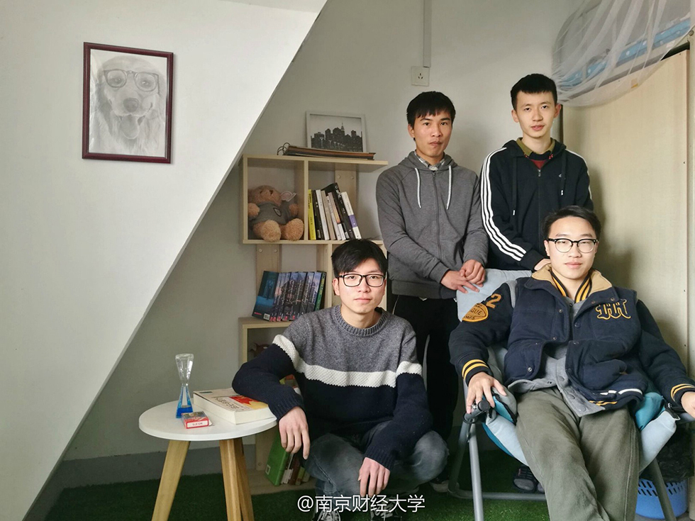 “這四個孩子風格迥異,學習成績也都很好,比如劉以康,績點4.0,是個超級學霸;廉鎮(zhèn)宇平時愛攝影,很活躍……”南京財經(jīng)大學外國語學院黨委副書記李慕原笑著介紹,早有耳聞他們宿舍很文藝,今天見到果然名不虛傳,“男生宿舍搞得這么美,我自己都覺得很有意思,不少女孩子看了圖片也驚嘆說要來好好借鑒?!?/p>