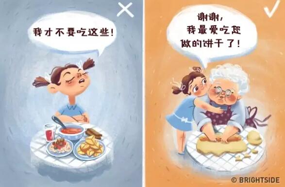 生活中有許多小事。例如,請(qǐng)他們擁抱并感謝奶奶做出美味的佳肴;提醒他們,得到幫助時(shí)要說謝謝,感謝爸爸媽媽所做的一切。