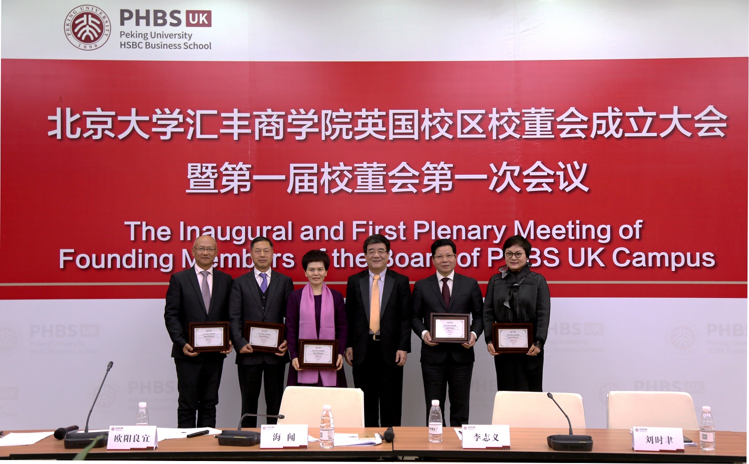 會(huì)議一致通過(guò)了《北京大學(xué)匯豐商學(xué)院英國(guó)校區(qū)校董會(huì)章程》。海聞院長(zhǎng)向全體創(chuàng)始校董贈(zèng)送了紀(jì)念品并合影留念。