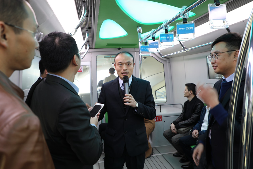 隨后,同學(xué)們親身體驗了比亞迪自主研發(fā)的跨座式單軌—云軌。云軌是比亞迪為解決城市擁堵問題歷時5年,投資50億傾心打造的跨座式單軌。具有造價低、建造周期短、占地面積小、噪聲低乘坐舒適等特點,采用全鋁輕型和流線型車身設(shè)計,搭載鐵電池儲能系統(tǒng)、永磁輪邊直驅(qū)電機(jī)、能量回饋系統(tǒng)和無人駕駛系統(tǒng)等領(lǐng)先科技,創(chuàng)造市民綠色出行新體驗。云軌自推出以來市場反饋熱烈,全球各大城市簽約動作頻頻,陸續(xù)開建落地,前景非常廣闊。