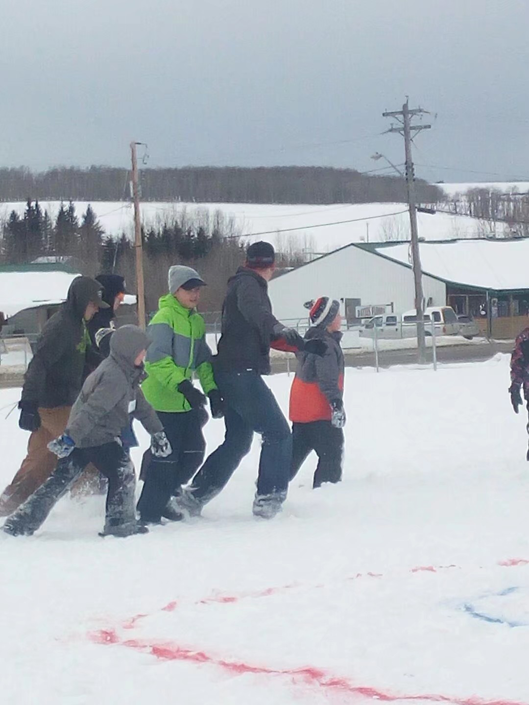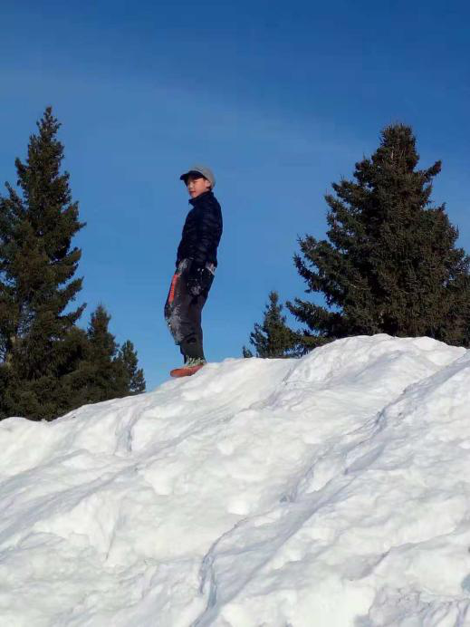 在學(xué)校,一望無際的操場上,雪丘一個比一個高,當你站在雪丘的至高點,笨重的校巴就不再是那么大了。喜歡雪的同學(xué)們一點也不怕冷。他們在雪地里打球、摔跤、滑雪,還不時地會聽到尖叫聲,原來是同學(xué)相互在雪丘上推上推下,開心得不亦樂乎。