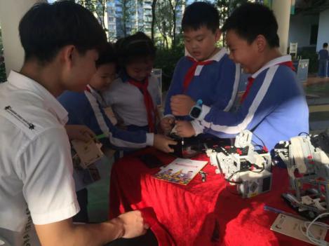 在活動(dòng)現(xiàn)場(chǎng),不少智能科技迷正被愛(ài)匯百變教育科技有限公司的EV3編程機(jī)器人高爾夫、EV3編程機(jī)器人幸運(yùn)大轉(zhuǎn)盤、EV3編程機(jī)器人障礙大闖關(guān)、電磁感應(yīng)千人震等系列體驗(yàn)活動(dòng),通過(guò)親身體驗(yàn),同學(xué)們收獲了LEGO仿真機(jī)械結(jié)構(gòu)及圖形化編程、電動(dòng)發(fā)電、電磁感應(yīng)、電路等科普知識(shí)。