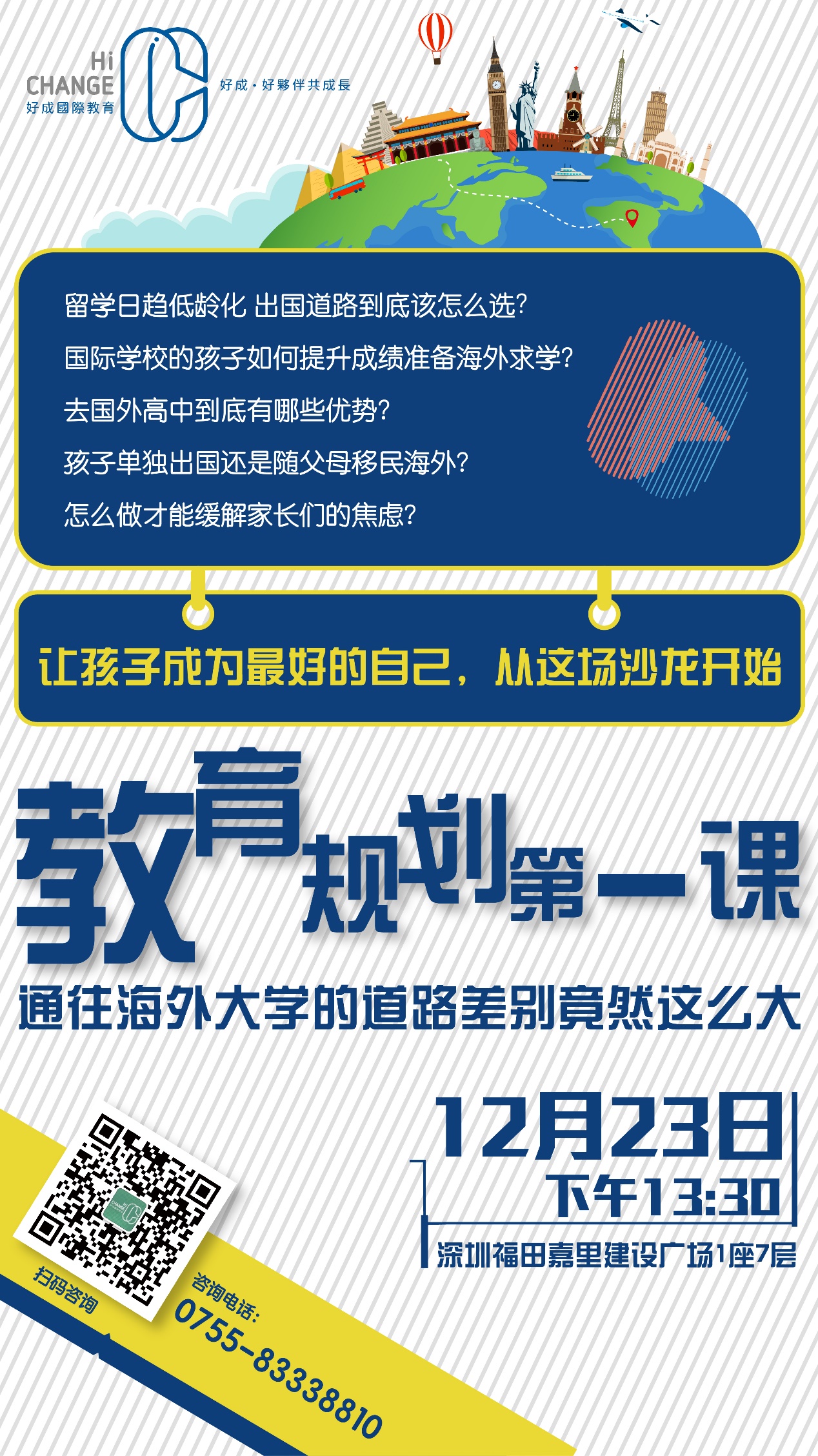 本周日,一場專業(yè)的深度分享會將在深圳福田嘉里建設(shè)廣場1座7層舉行。資深留學(xué)導(dǎo)師、美國頂尖名校申請金牌規(guī)劃師邵靜文老師,國際課程體系資深老師王一老師將以 “教育規(guī)劃第一課:通往海外大學(xué)的道路差別竟然這么大” 為主題,直面痛點,與家長孩子面對面交流,為你解開出國留學(xué)的重重困擾。