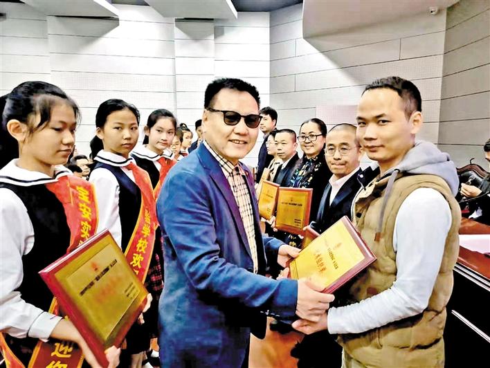 區(qū)慈善會負(fù)責(zé)人為獲獎單位頒獎。