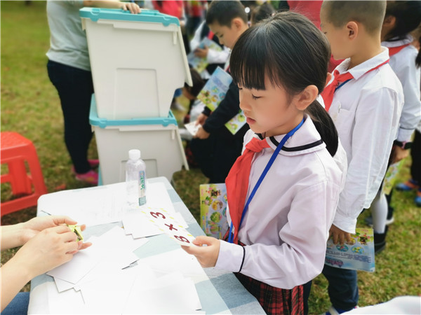 據(jù)悉,本次活動以闖關(guān)的形式,每年級各分10個關(guān)卡,每闖一關(guān)就獲得一個能量動物或者能量植物填補(bǔ)闖關(guān)卡的空白,各年級的學(xué)生需要在半小時內(nèi)將闖關(guān)卡的空白處填滿,才算闖關(guān)成功,獲得有校長贈言的書籍一本。關(guān)卡的設(shè)置以語文、數(shù)學(xué)和英語三個科別組成,其中,最受孩子們青睞的要數(shù)“筆架說話”這個關(guān)卡,孩子們把自己相像成筆架山的一員,然后介紹自己,有同學(xué)說:“我是筆架山的大樹,我可以給大家遮蔭,讓大家不用被太陽曬到。”、“我是筆架山的石頭,孩子們來筆架山玩的時候,可以把我們拼在一起做拼圖。”、“我想成為筆架山的暗綠繡眼鳥,就是嘴巴尖尖的,頭上綠綠的,眼睛邊上有點(diǎn)白色的那種,我要站在筆架山的枝頭上盡情歌唱,紅紅的火焰花為我做背景!”......孩子們通過豐富的相信力,盡情在老師與家長義工面前展現(xiàn)臨場的表達(dá)能力。