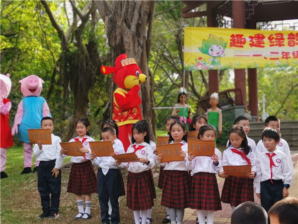 在鳥語相伴下,深圳市學(xué)生文聯(lián)秘書長謝晨的講話拉開本次活動的序幕,他贊揚(yáng)了華新小學(xué)學(xué)生們學(xué)業(yè)上的優(yōu)秀表現(xiàn),肯定本次活動寓教于自然的教學(xué)方式,也表達(dá)了多次參加華新小學(xué)的活動的喜悅之情。隨后,每個年級各準(zhǔn)備了兩個節(jié)目為現(xiàn)場帶來歡樂的氣氛,“綠韻筆架?趣建我的學(xué)習(xí)能量王國”活動正式開始,學(xué)生們紛紛往自己年級的活動區(qū)域飛奔而去。