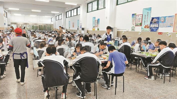 “學(xué)校食堂飯菜可口,有多種可以選擇?!泵妨种袑W(xué)高三(7)班學(xué)生劉嘉琳表示。據(jù)悉,返校當(dāng)天,該校高三年級(jí)有480多位學(xué)生在學(xué)生餐廳和改造后的乒乓球場(chǎng)定人定座就餐。