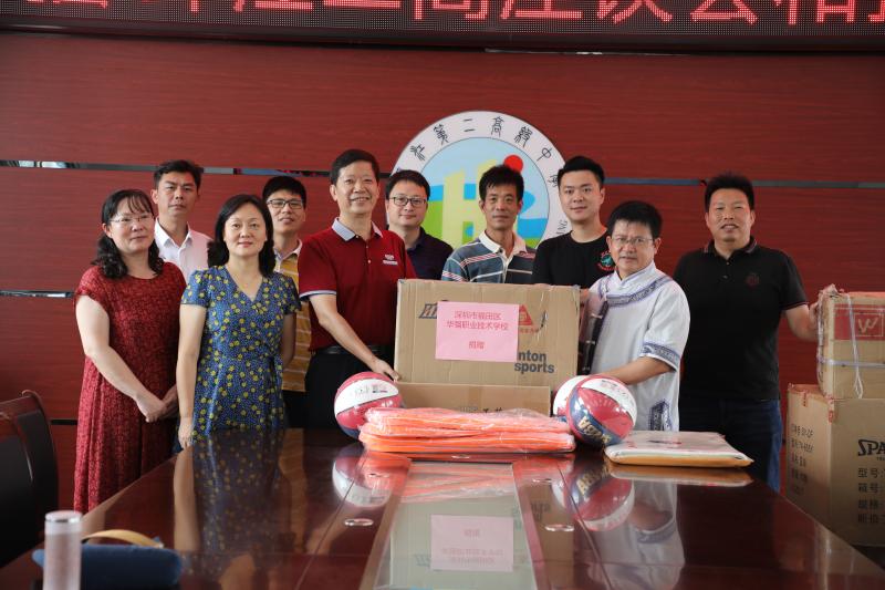 幫扶捐贈儀式上,華強(qiáng)職校代表團(tuán)代表學(xué)校向環(huán)江職校捐贈了7箱文體教學(xué)用品,有毛筆、宣紙,籃球、羽毛球拍、乒乓球拍等,價值2萬多元人民幣,表達(dá)了華強(qiáng)職校對對口支教的兄弟學(xué)校的深情厚誼。
