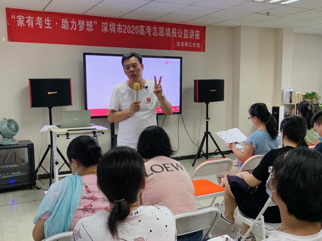 為了幫助深圳市廣大高考學(xué)子填出理想志愿,粵港澳高等教育研究中心主辦,連老師工作室承辦的2020“家有考生,助力夢想”高考志愿填報公益講座持續(xù)半個月,共計(jì)5場講座(其中線下4場,線上1場)。公益講座全部由生涯規(guī)劃視角下的高考志愿填報模型研發(fā)者、被業(yè)內(nèi)譽(yù)為廣東省最牛高考志愿規(guī)劃師的連德敏博士主講。