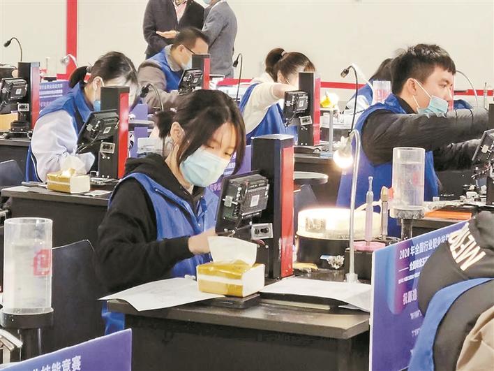 博倫職業(yè)技術(shù)學校學生參加珠寶玉石檢測技能大賽。