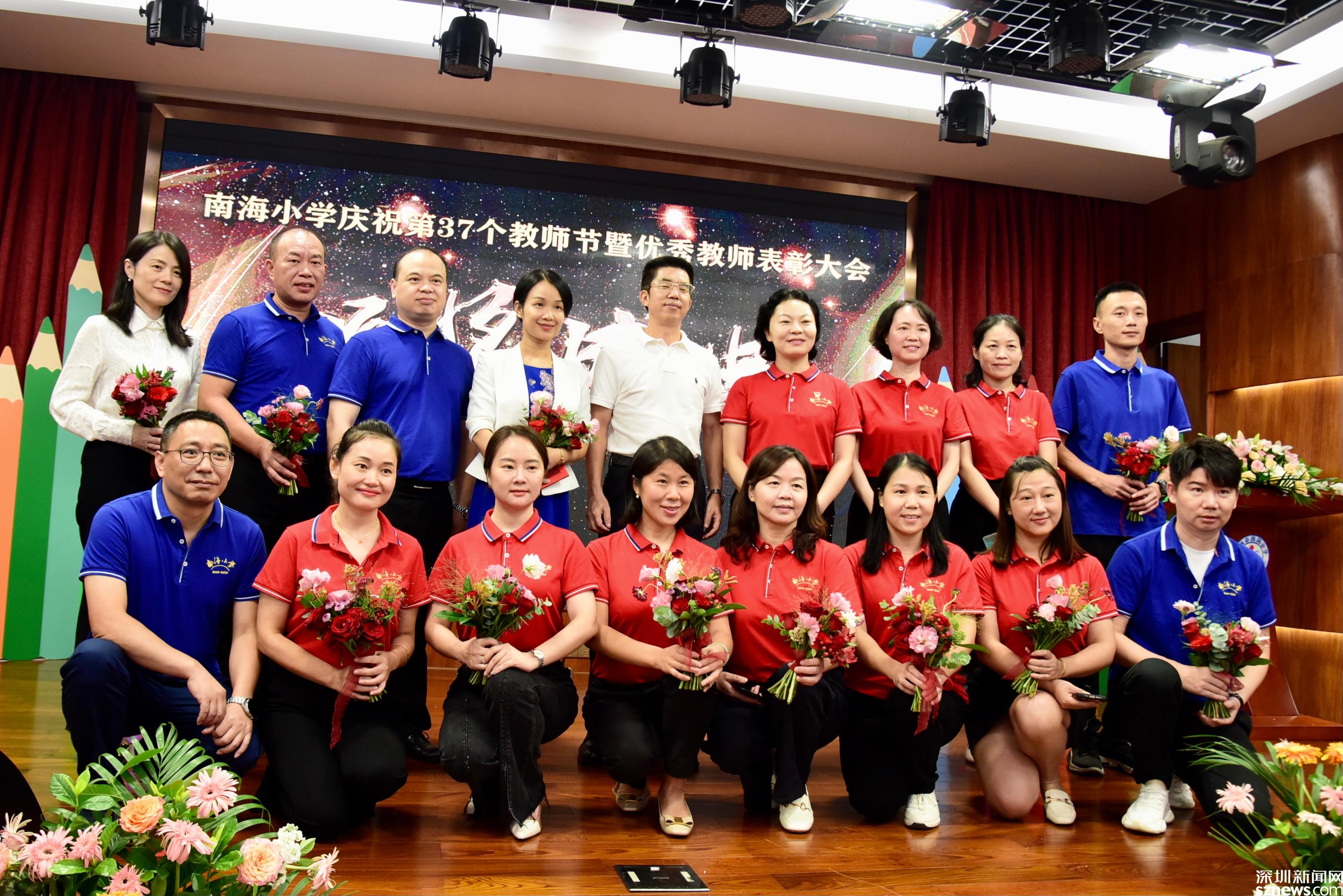 讀特客戶端·深圳新聞網(wǎng)2021年9月10日訊 (記者 曹園芳)賡續(xù)百年初心,擔(dān)當(dāng)育人使命。9月9日下午,伴隨著下課鈴響,深圳市南山區(qū)南海小學(xué)教師齊聚一堂,共同慶祝第37個(gè)教師節(jié),并對(duì)優(yōu)秀教師進(jìn)行表彰。南山區(qū)教育局陳登福副局長(zhǎng),南海小學(xué)高鵬校長(zhǎng)、李惠副校長(zhǎng)、商洪德副校長(zhǎng)等領(lǐng)導(dǎo)嘉賓出席了活動(dòng),并為優(yōu)秀教師頒獎(jiǎng)。