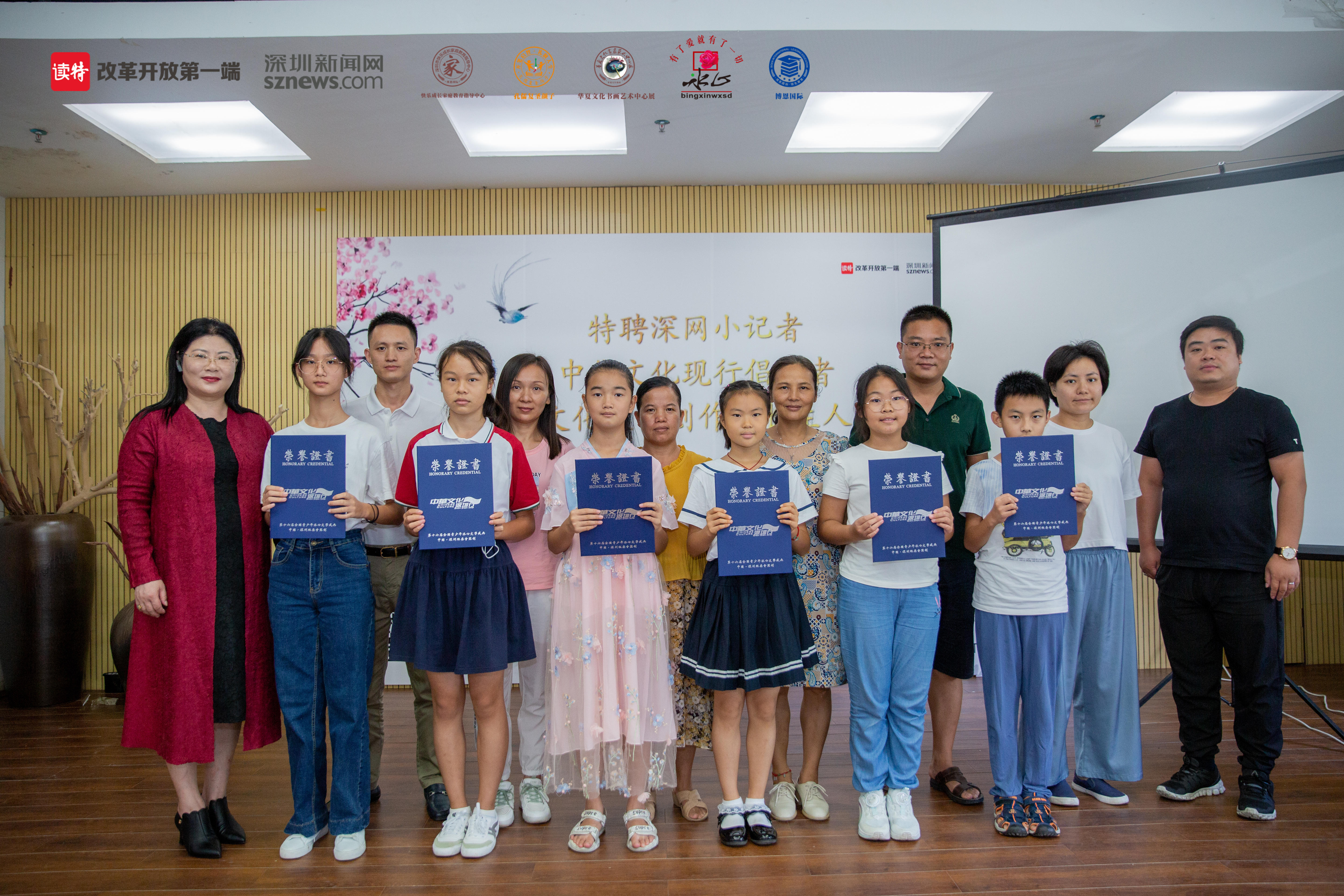 活動(dòng)現(xiàn)場(chǎng),組委會(huì)還為入選《中華文化現(xiàn)行倡導(dǎo)者》、《中華文化文學(xué)特長(zhǎng)生人才庫(kù)》、深網(wǎng)小記者、《原創(chuàng)作品報(bào)備》、復(fù)賽晉級(jí)生等優(yōu)生代表頒獎(jiǎng)?lì)C證。