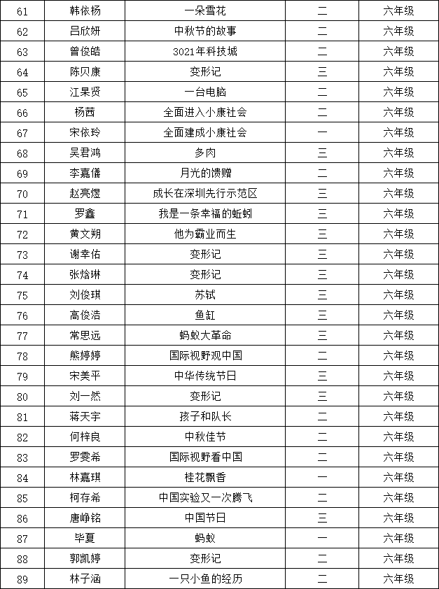自2021年1月,活動(dòng)征稿啟動(dòng)以來(lái),獲得了深圳市廣大中小學(xué)生、教師、文學(xué)愛(ài)好者的熱烈響應(yīng)積極參與,吸引了深圳百余所學(xué)校的上萬(wàn)人關(guān)注報(bào)名?,F(xiàn)公布龍華區(qū)丹堤實(shí)驗(yàn)學(xué)校晉級(jí)復(fù)賽名單如下: