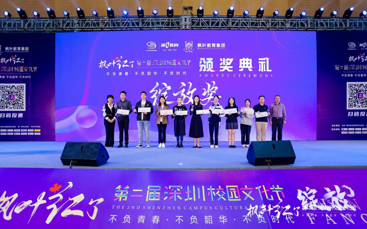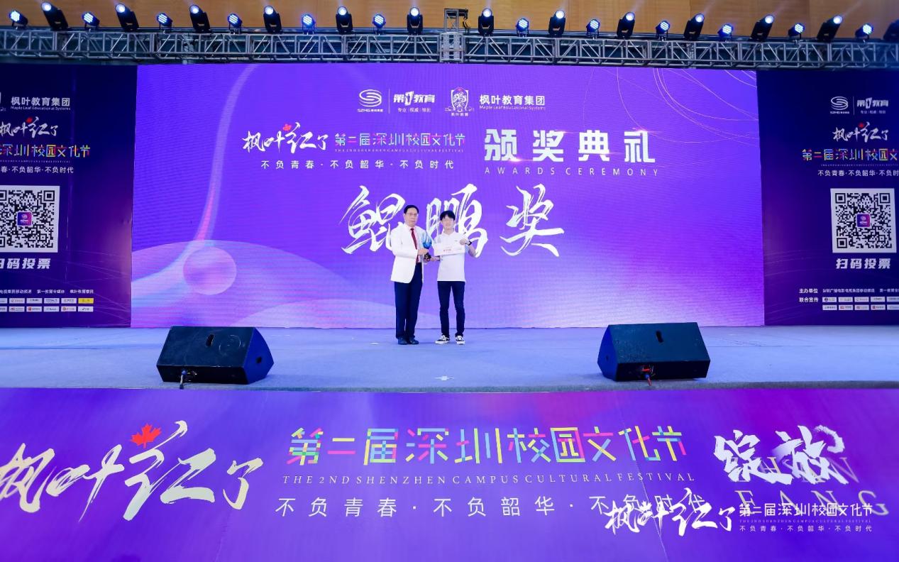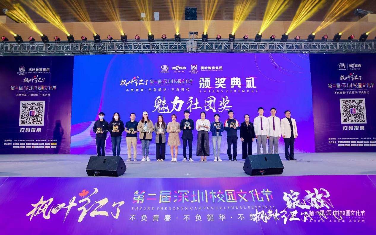 另據了解,本屆活動不以競賽為目的,不設專業(yè)評委,不設專業(yè)分數,不設獎牌等級,而是以鼓勵學生全面發(fā)展、校園文化交流為初心,由觀眾們自發(fā)投票評選出魅力社團獎、優(yōu)秀指導老師獎、鯤鵬獎、綻放獎、最具人氣獎。記者從現場了解到,獲得本屆魅力社團獎的學校有10所,分別是:深圳市南山區(qū)文理實驗學校(集團)《模擬聯合國社》、南山區(qū)前海學?!栋羟蜿牎?、深圳實驗學校高中部《回聲合唱團》、深圳高級中學(集團)中心校區(qū)《深高學生戲劇團》、深圳市楓葉學?!队⒄Z戲劇社》、深圳市龍華中學《跆拳道空手》、深圳市蛇口育才教育(集團)育才中學 《404樂隊》、深圳市育新學校 《The best軍樂團》、南方科技大學附屬中學《機器人隊》、深圳市藝術高中《鐘呂交響管樂團》;獲得本屆校園文化節(jié)鯤鵬獎(唯一)的學校是:南方科技大學附屬中學;獲得本屆校園文化節(jié)綻放獎的是9所學校,分別是:深圳市第一職業(yè)技術學校、深圳中學、深圳市藝術高中、深圳市寶安中學(集團)、深圳市第三職業(yè)技術學校、深圳市楓葉學校、深圳市龍崗區(qū)龍城高級中學、寶安區(qū)為明雙語實驗學校、深圳市蛇口育才教育(集團)育才中學;獲得現場最具人氣獎的學校有10所,分別是:深圳市第一職業(yè)技術學校、深圳市福田區(qū)華強職業(yè)技術學校、深圳市第三職業(yè)技術學校、深圳大學附屬中學、紅嶺中學(集團)石廈初中部、龍崗區(qū)蘭著學校、萬科梅沙書院、深圳市南山區(qū)文理實驗學校(集團)、筍崗中學、寶安中學(集團);最后同時獲得本屆校園文化節(jié)優(yōu)秀指導老師獎的學校分別來自:南方科技大學附屬中學、深圳市第一職業(yè)技術學校、深圳中學、深圳市蛇口育才教育(集團)育才中學、深圳市寶安中學(集團)、深圳市第三職業(yè)技術學校、深圳市藝術高中、深圳市楓葉學校、寶安區(qū)為明雙語實驗學校、深圳市龍崗區(qū)龍城高級中學。