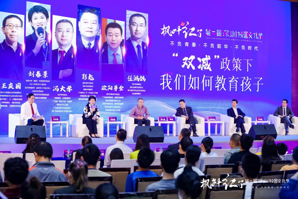 下午,現場舉行“雙減政策,該如何教育我們的孩子”專家論壇,深圳大學國際交流學院原院長王慶國、羅湖區(qū)第三屆人大代表彭彪、寶安中學(集團)外國語學校校長劉春景、松坪學校校長馮大學、筍崗中學校長歐陽普全、楓葉教育集團副校監(jiān)兼研究院院長任鴻鴿等六位嘉賓出席本屆論壇。圍繞雙減政策下,如何教育孩子?進行深層次的探討,分享各自的觀點與建議,為廣大學生與家長解疑答惑。