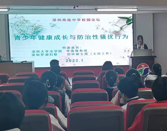 讀特客戶端·深圳新聞網(wǎng)2022年1月8日訊(記者 陳彬)為進(jìn)一步加強(qiáng)校園性騷擾防治,推動深圳在“法治城市示范”建設(shè)工作上先行示范,1月8日,深圳市高級中學(xué)舉辦“青少年健康成長與防治性騷擾行為”主題論壇,邀請深圳市羅湖區(qū)婦聯(lián)副主席田林、深圳大學(xué)法學(xué)院李薇薇教授、深圳市高級中學(xué)學(xué)生代表吳雅涵同學(xué)擔(dān)任主講,深圳市高級中學(xué)國際部高年級同學(xué)到場聆聽。