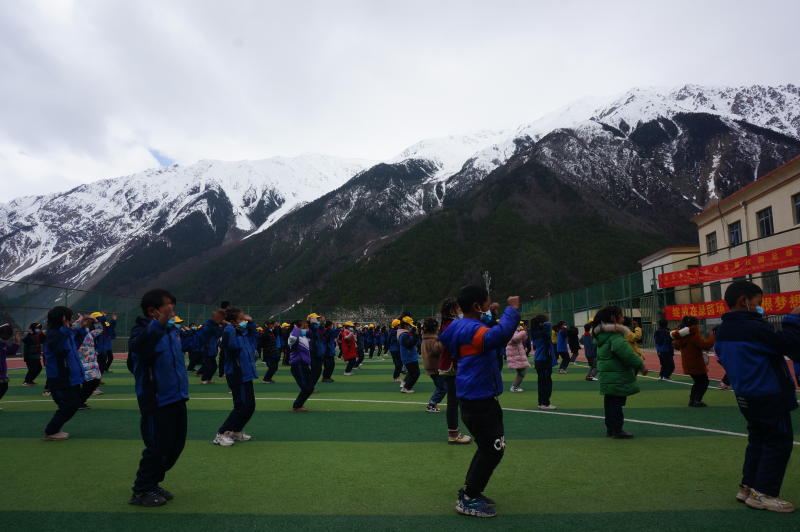 這是一所公路沿線小學,一樓的教室低于公路路面,往窗外仰望,看見牦牛的脊背不緊不慢地悠悠經過。而風聲則又急又厲,在空中迅疾呼嘯,那動靜像北方冬天的西北風,卷起農民家里屋檐下的裝飾彩色布條上下翻飛。有時就會沒來由地覺得胸悶、胃里有壓迫感,這是高原反應在隱隱發(fā)作。其實也不影響跑跳、說笑,只是身體的一些角落隱隱地提醒你:這里是高原。因為地勢高的緣故,四月初的雪在這里下到了膝蓋那么厚,要用推土車來開道。我們來的時候,山上的雪線還十分低,似乎在說著一周前的那場大雪。學生跳課間操的時候,似乎是頭頂著雪山,高原再也沒有那么直觀地呈現(xiàn)在你面前。西藏的名山實在是太多了,所以人們津津樂道的往往只有那些頂著名的、世界前列的,可對我來說,察隅的一山一水是那樣的多情可親,擁有著毫不遜色于名山大川的壯闊精彩。