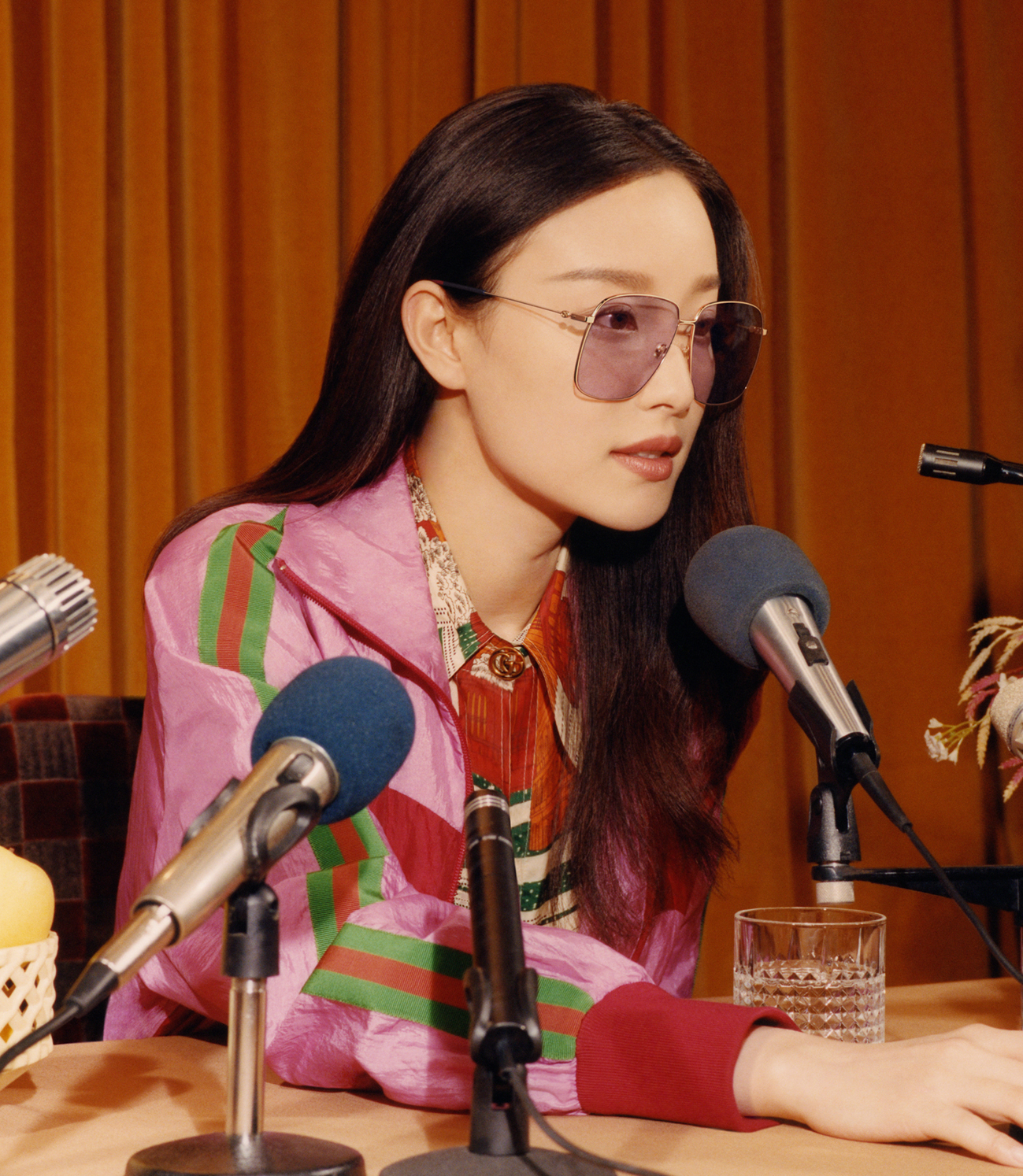 該廣告大片由攝影師 Colin Dodgson掌鏡, Christopher Simmonds擔(dān)任藝術(shù)指導(dǎo),整體構(gòu)圖色彩繽紛,趣味盎然。靈感源于以好萊塢為代表的70年代和80年代流行歌手和影星新聞發(fā)布會(huì)場景,鏡頭下的倪妮置身于新聞發(fā)布會(huì)現(xiàn)場,面對(duì)眾多麥克風(fēng)對(duì)答自如,談笑風(fēng)生。70年代也是米開理癡迷的迷幻年代,這是一個(gè)對(duì)時(shí)尚、設(shè)計(jì)、音樂等領(lǐng)域產(chǎn)生持久影響的年代,賦予米開理無限創(chuàng)意靈感。