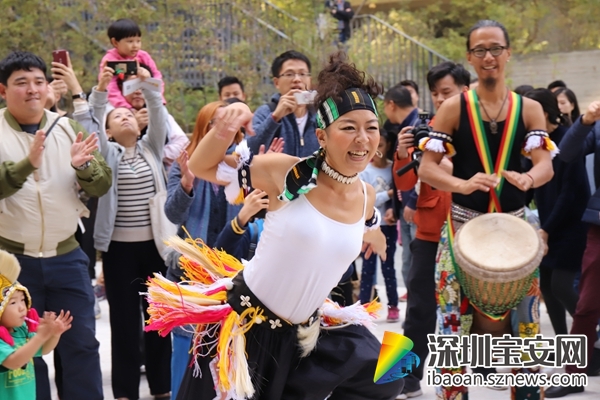 “冬添集市”分為六大板塊,包含:“添趣”“添織”“添耕”“添音”“添物”“添食”,其中最熱鬧的就要數(shù)主舞臺區(qū)的“添音”展區(qū),JAMMALA樂隊和非錄音樂俱樂部連續(xù)兩日,準(zhǔn)點帶來音樂表演。JAMMALA樂隊是由一群來自世界各地鼓友們成立的一支非洲傳統(tǒng)打擊樂隊,10日下午3:30,熱情洋溢的鼓聲在泰華梧桐島響起,伴隨著歡快的舞蹈,不少參觀市民加入到游街表演的隊伍中來,禁不住一起跳起來,唱起來,現(xiàn)場活動氣氛熱烈。