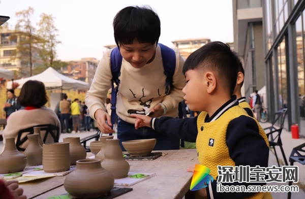 除了音樂,最吸引小朋友們的自然還是有趣好玩的手工、小玩偶等等,“冬添集市”上西游?藝術(shù)、螞蟻少年、悅谷桌游、自然精靈親子坊等展區(qū)吸引了很多小朋友。在西游?藝術(shù)展區(qū),親子齊上陣,一起學(xué)習(xí)制作茶壺、茶杯還有碗碟等,為了親自體驗一把,不少家庭排起了長隊。