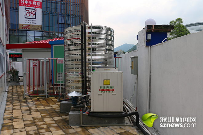 在施工駐地,施工單位還采用了耗電少的空氣能熱水器??諝饽軣崴魍ㄟ^吸收空氣中的熱量,便隨時產(chǎn)生熱水。在常年平均氣溫22.5℃的深圳,熱源充足,使用起來綠色環(huán)保又方便。