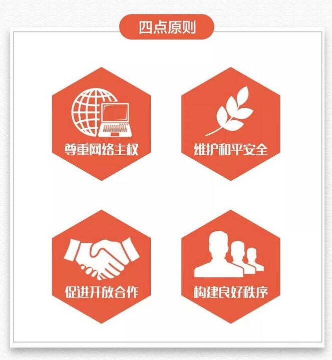 習(xí)近平曾指出,互聯(lián)網(wǎng)發(fā)展是無國界、無邊界的,利用好、發(fā)展好、治理好互聯(lián)網(wǎng)必須深化網(wǎng)絡(luò)空間國際合作,攜手構(gòu)建網(wǎng)絡(luò)空間命運共同體。要理直氣壯維護我國網(wǎng)絡(luò)空間主權(quán),明確宣示我們的主張。為此,習(xí)近平提出“四點原則”和“五點主張”: