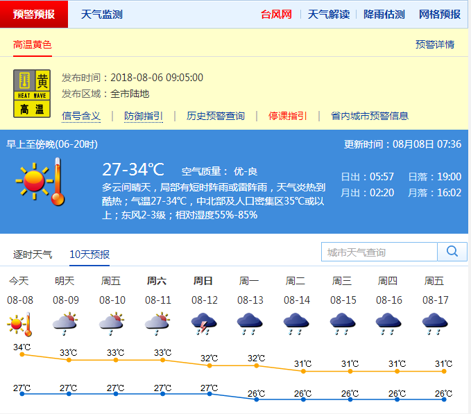 市氣象局發(fā)布未來10天天氣預(yù)報(數(shù)據(jù)更新于8月8日07時36分)
