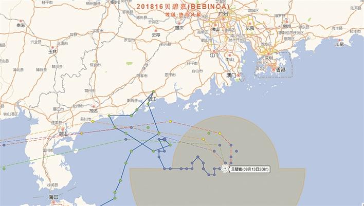 ▲今年第16號臺風(fēng)“貝碧嘉”行進(jìn)路徑迂回曲折。